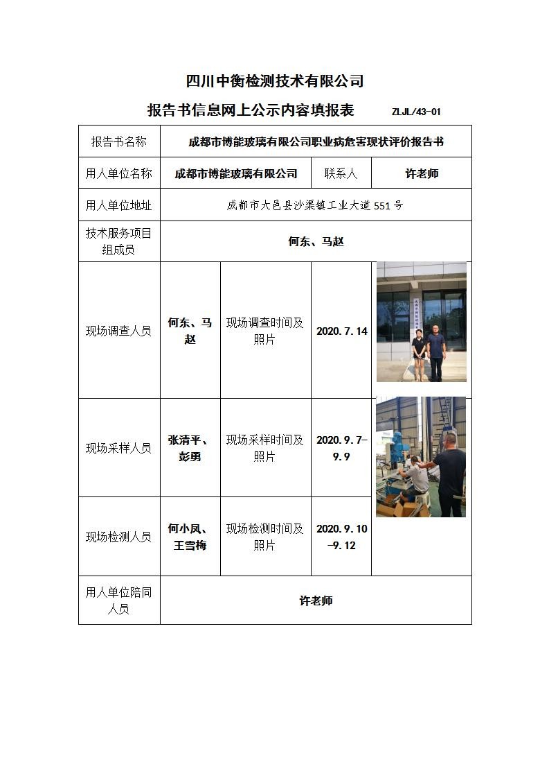 成都市博能玻璃有限公司職業病危害現狀評價報告書