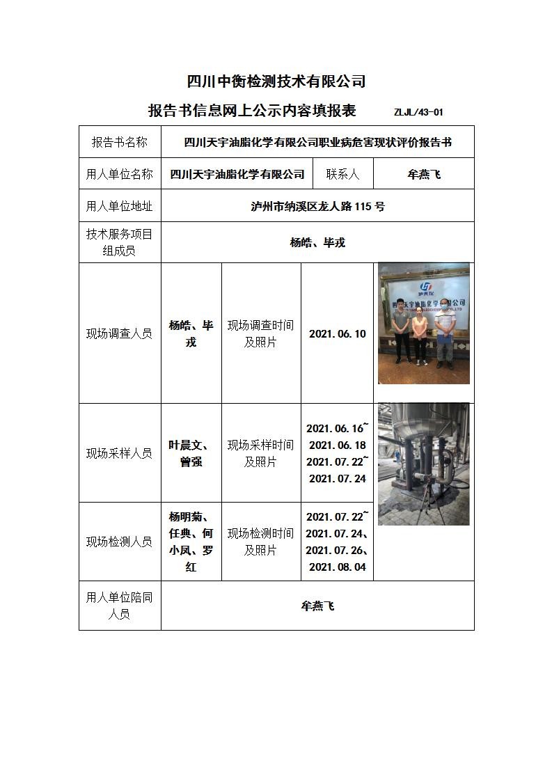 四川天宇油脂化學(xué)有限公司職業(yè)病危害現(xiàn)狀評價