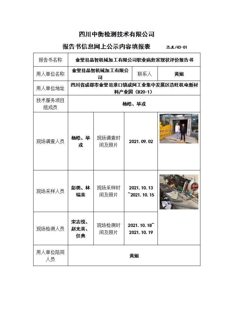 金堂縣晶智機(jī)械加工有限公司職業(yè)病危害現(xiàn)狀評(píng)價(jià)
