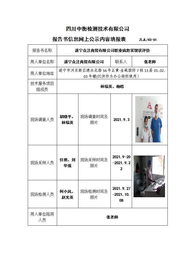 遂寧眾注商貿有限公司職業病危害現狀評價
