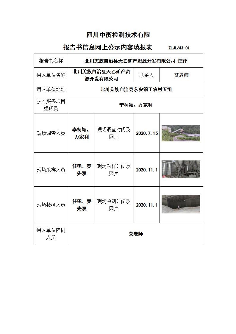 北川羌族自治縣天乙礦產資源開發有限公司 控評
