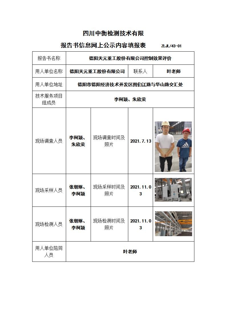 德陽(yáng)天元重工股份有限公司控制效果評(píng)價(jià)