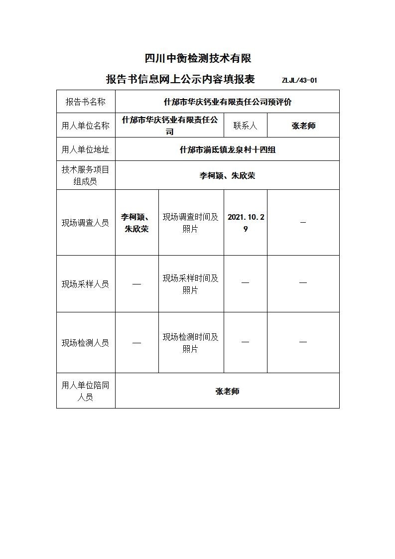 什邡市華慶鈣業有限責任公司預評價