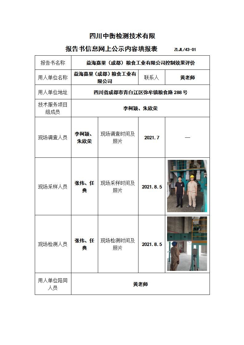 益海嘉里(成都)糧食工業有限公司控制效果評價