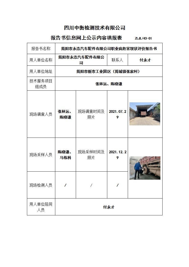 簡陽市永浩汽車配件有限公司職業病危害現狀評價