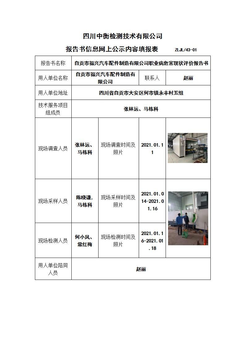 自貢市福興汽車配件制造有限公司職業病危害現狀評價
