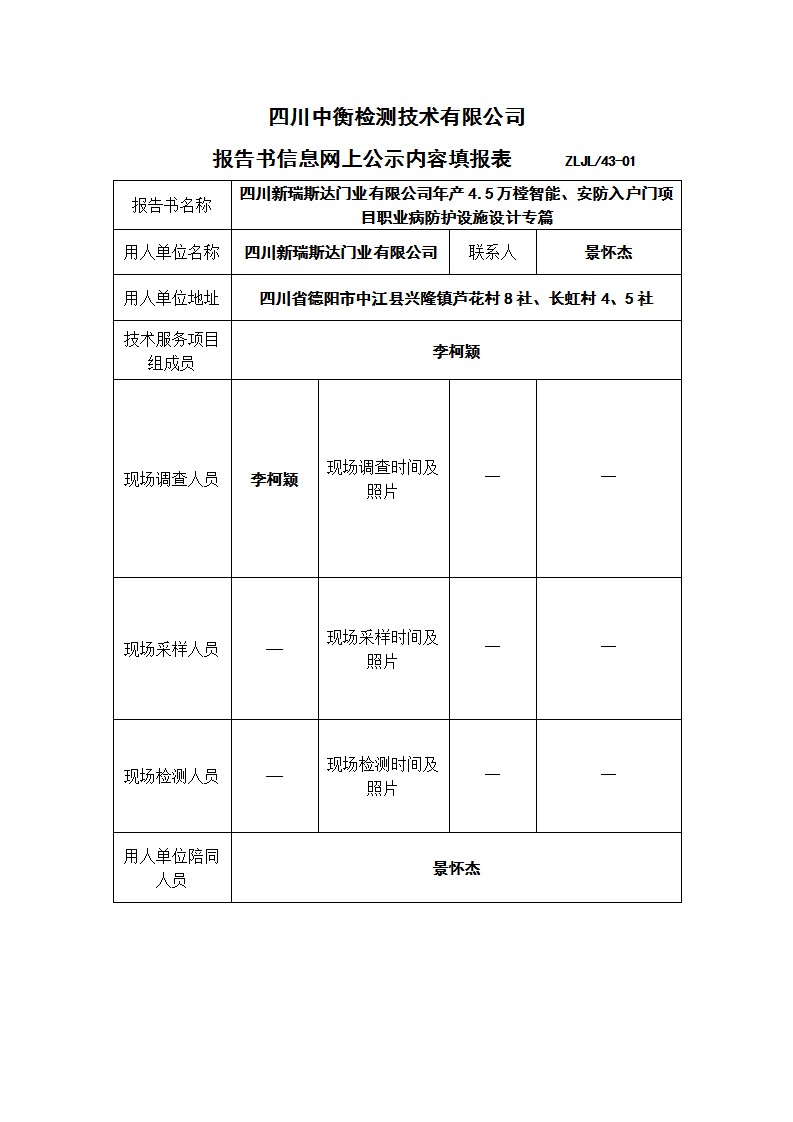 四川新瑞斯達(dá)門業(yè)有限公司年產(chǎn)4.5萬(wàn)樘智能、安防入戶門項(xiàng)目職業(yè)病防護(hù)設(shè)施設(shè)計(jì)專篇