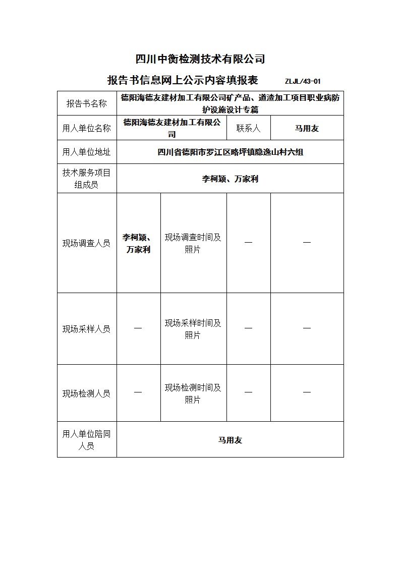 德陽海德友建材加工有限公司礦產品、道渣加工項目職業病防護設施設計專篇