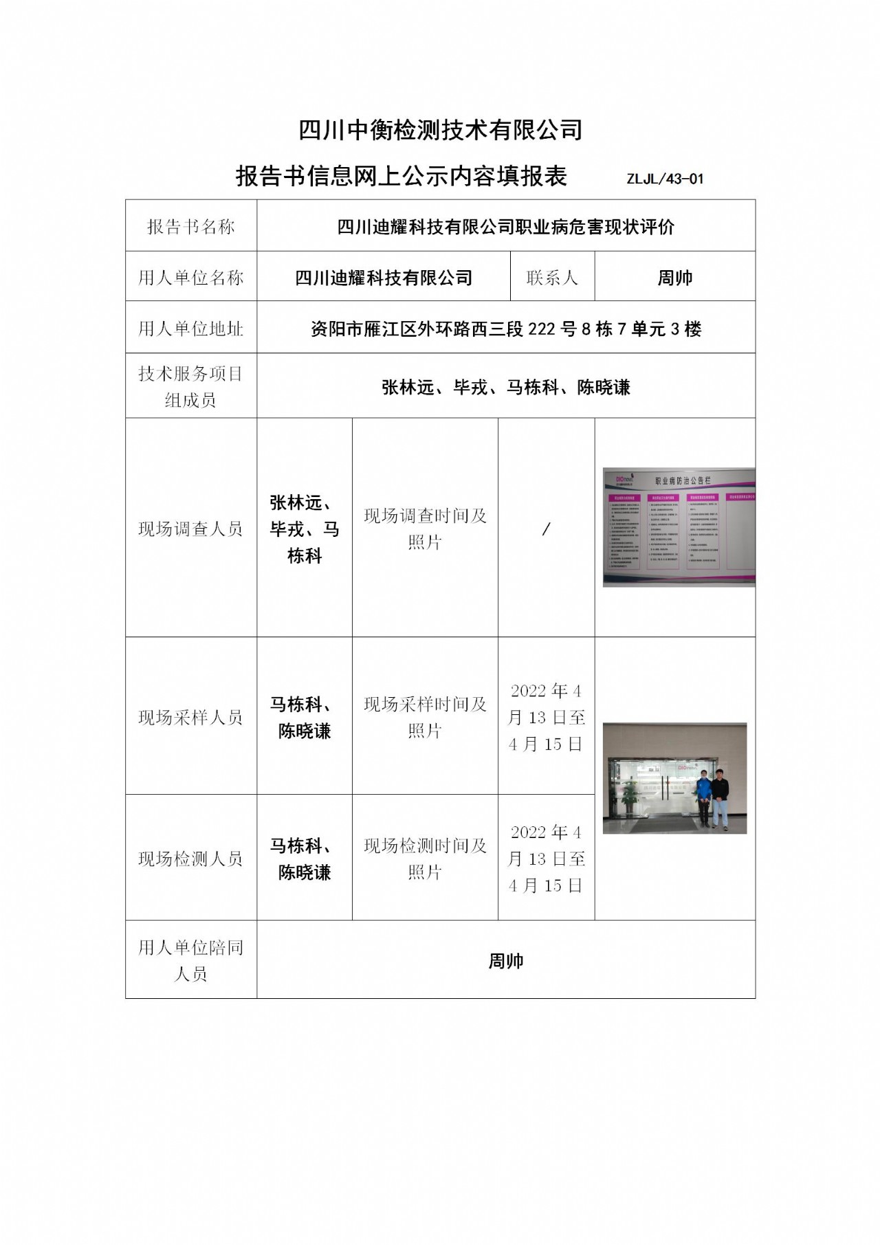 四川迪耀科技有限公司職業病危害現狀評價