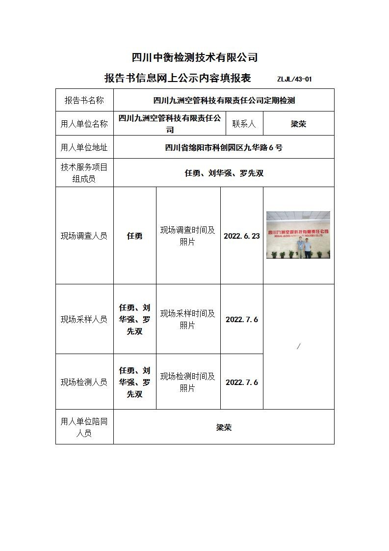 四川九洲空管科技有限責任公司職業病危害定期檢測