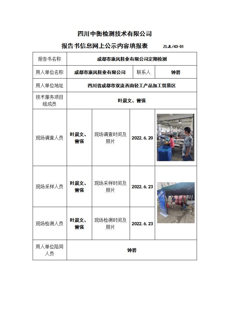 成都市康鳳鞋業(yè)有限公司職業(yè)病危害定期檢測