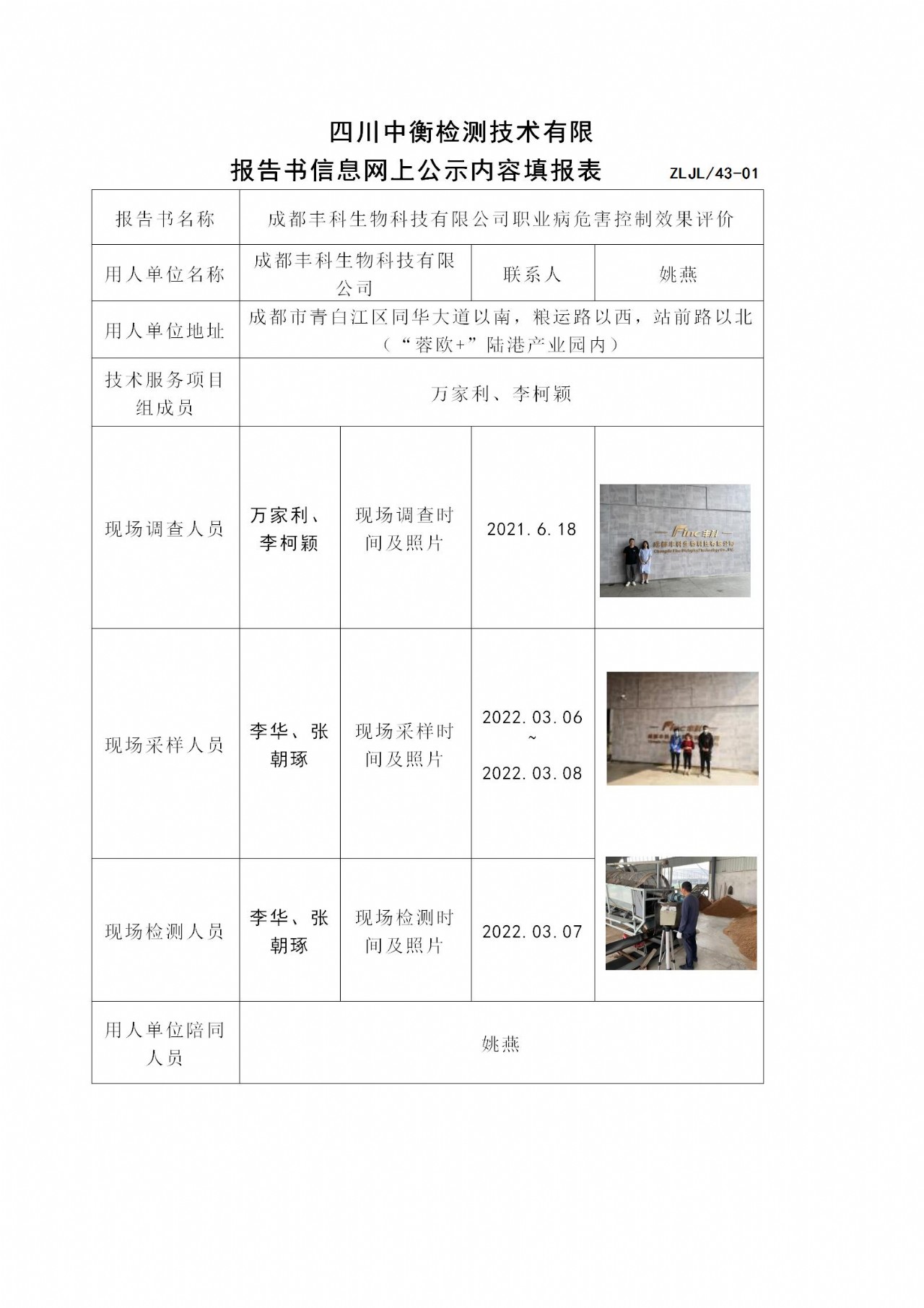 成都豐科生物科技有限公司職業病危害控制效果評價