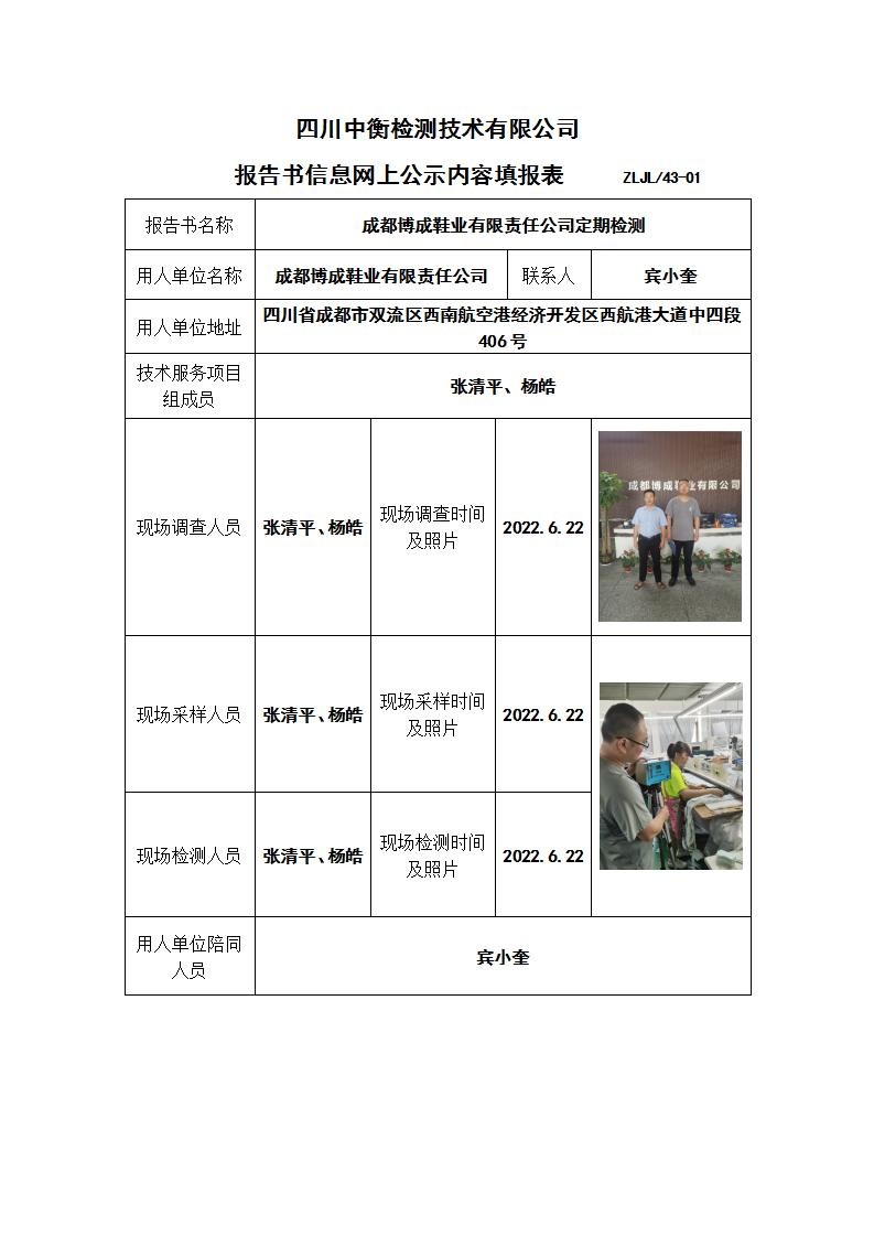 成都博成鞋業有限責任公司職業病危害定期檢測