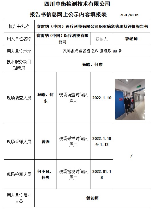賽雷納(中國)醫療科技有限公司職業病危害現狀評價