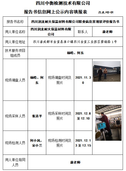 四川潤龍耐火保溫材料有限公司職業(yè)病危害現(xiàn)狀評(píng)價(jià)