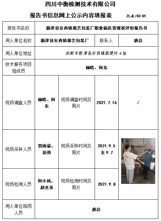 新津縣安西鎮馨藝包裝廠職業病危害現狀評價