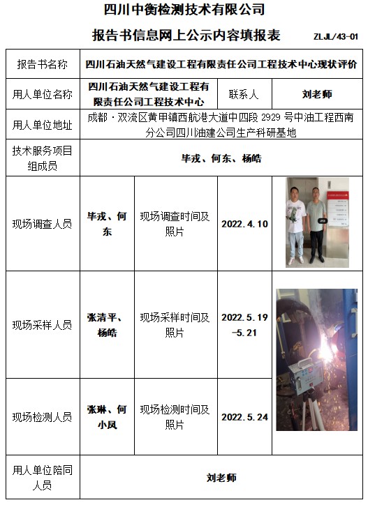 四川石油天然氣建設工程有限責任公司工程技術中心現狀評價
