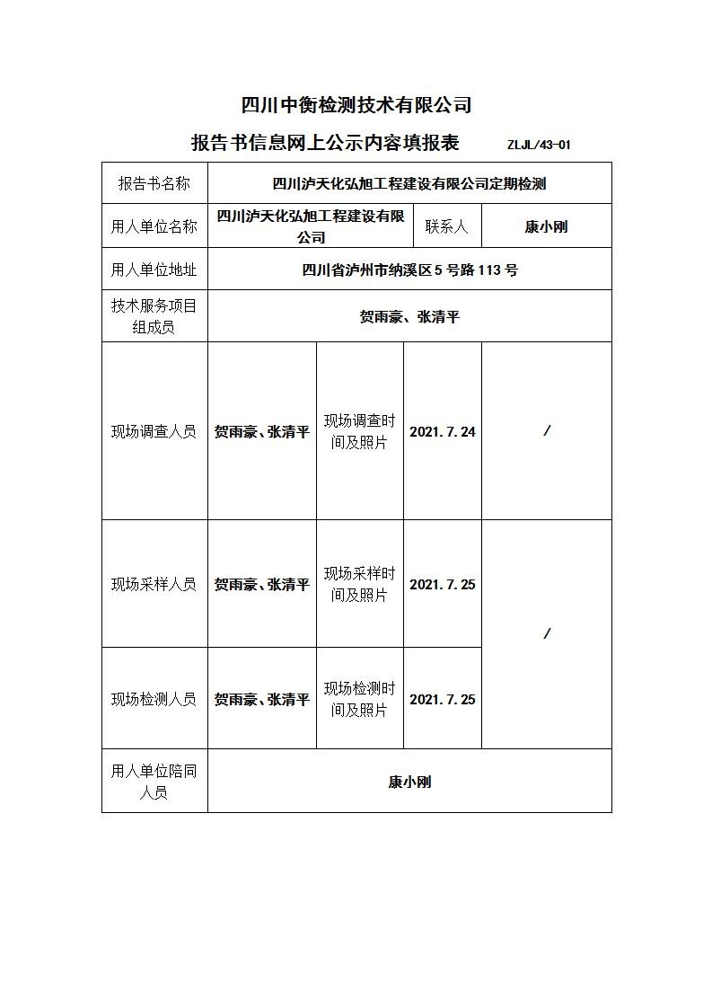 四川瀘天化弘旭工程建設有限公司職業(yè)病危害定期檢測
