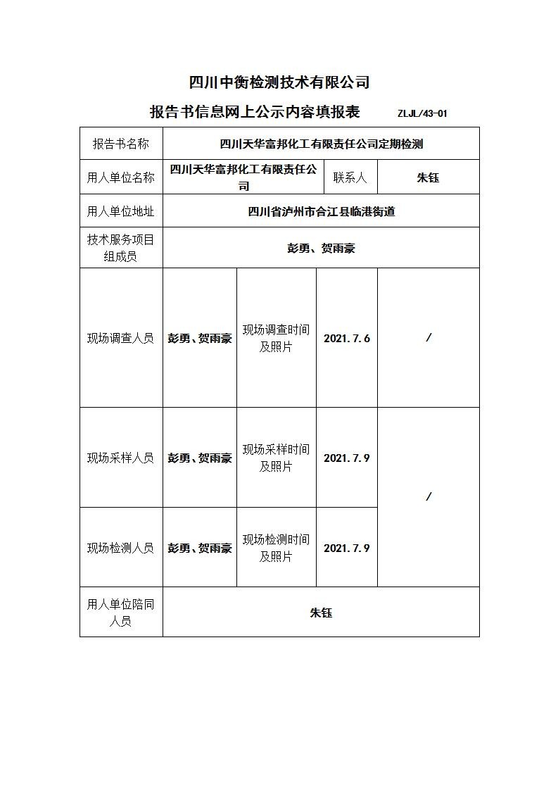 四川天華富邦化工有限責任公司職業病危害定期檢測