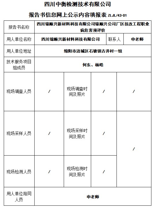 四川錦順興新材料科技有限公司錦順興公司廠區技改工程職業病危害預評價