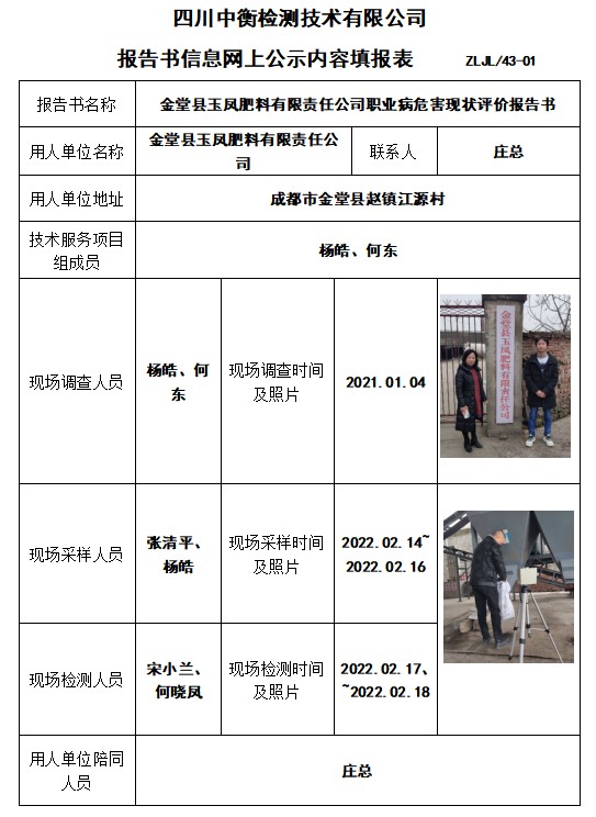金堂縣玉鳳肥料有限責(zé)任公司職業(yè)病危害現(xiàn)狀評(píng)價(jià)