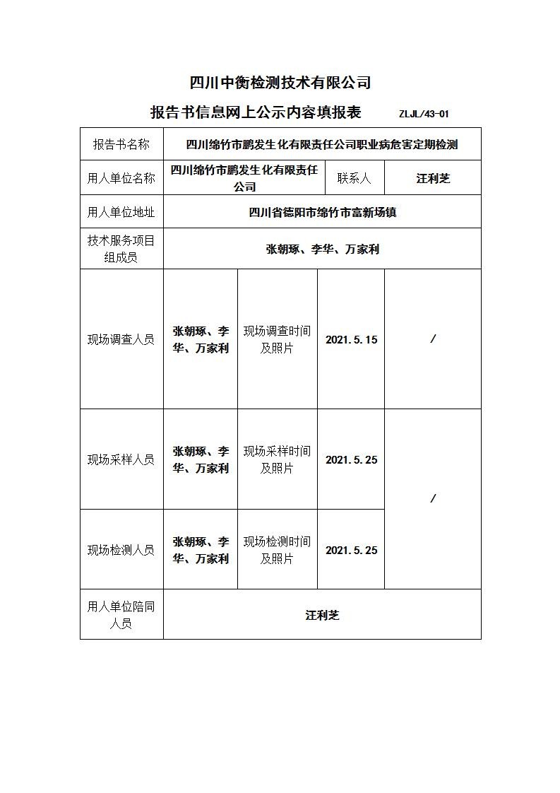 四川綿竹市鵬發(fā)生化有限責(zé)任公司定期檢測(cè)