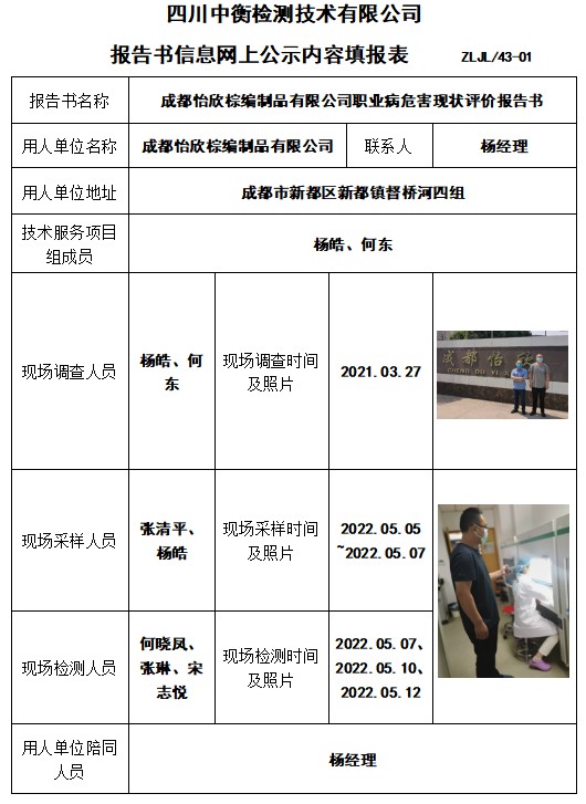 成都怡欣棕編制品有限公司職業病危害現狀評價