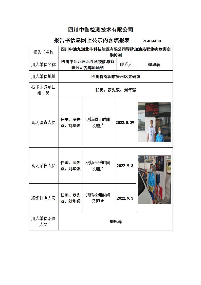 四川中油九洲北斗科技能源有限公司界碑加油站職業(yè)病危害定期檢測