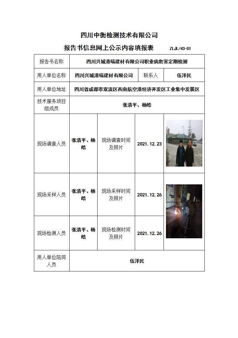 四川興城港瑞建材有限公司職業病危害定期檢測