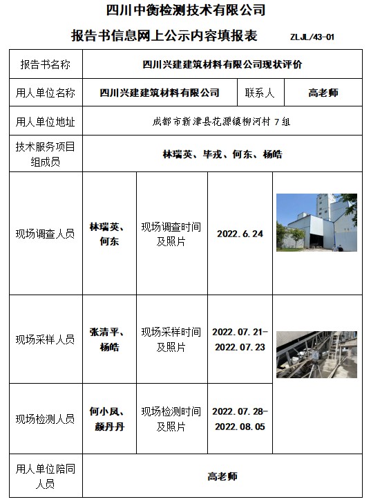 四川興建建筑材料有限公司現(xiàn)狀評(píng)價(jià)