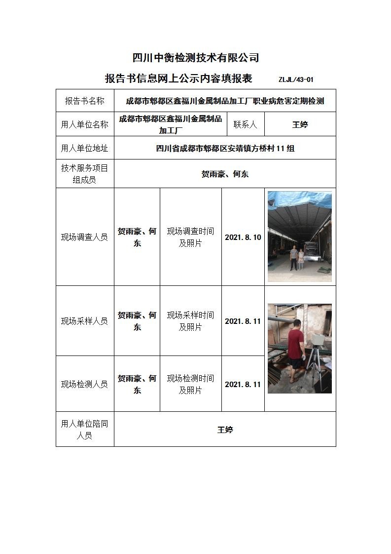 成都市郫都區鑫福川金屬制品加工廠職業病危害定期檢測