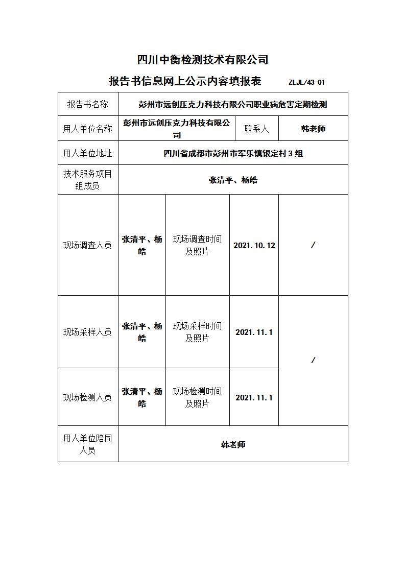 彭州市遠創壓克力科技有限公司定期檢測