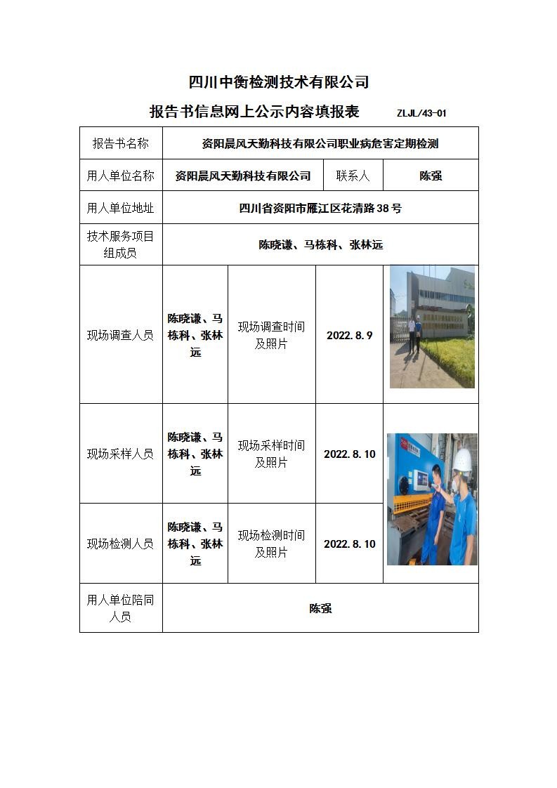 資陽晨風天勤科技有限公司職業病危害定期檢測