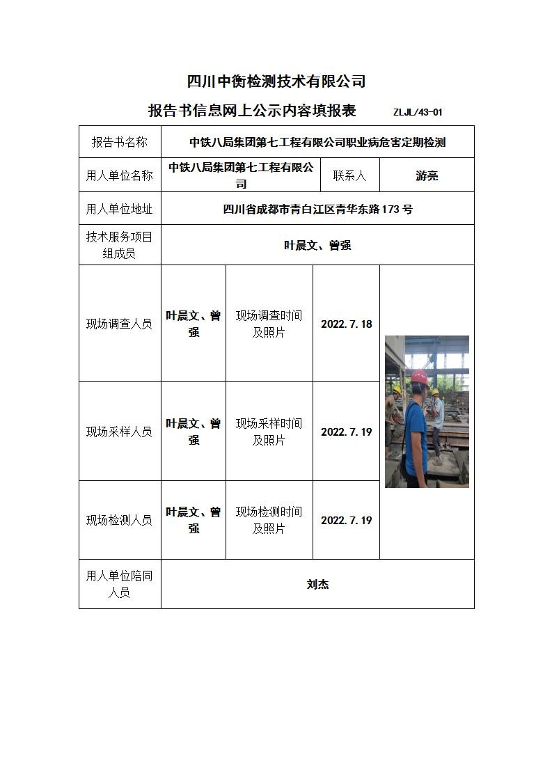 中鐵八局集團第七工程有限公司職業病危害定期檢測