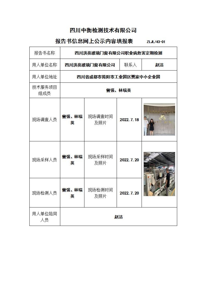 四川洪亮玻璃門窗有限公司職業(yè)病危害定期檢測