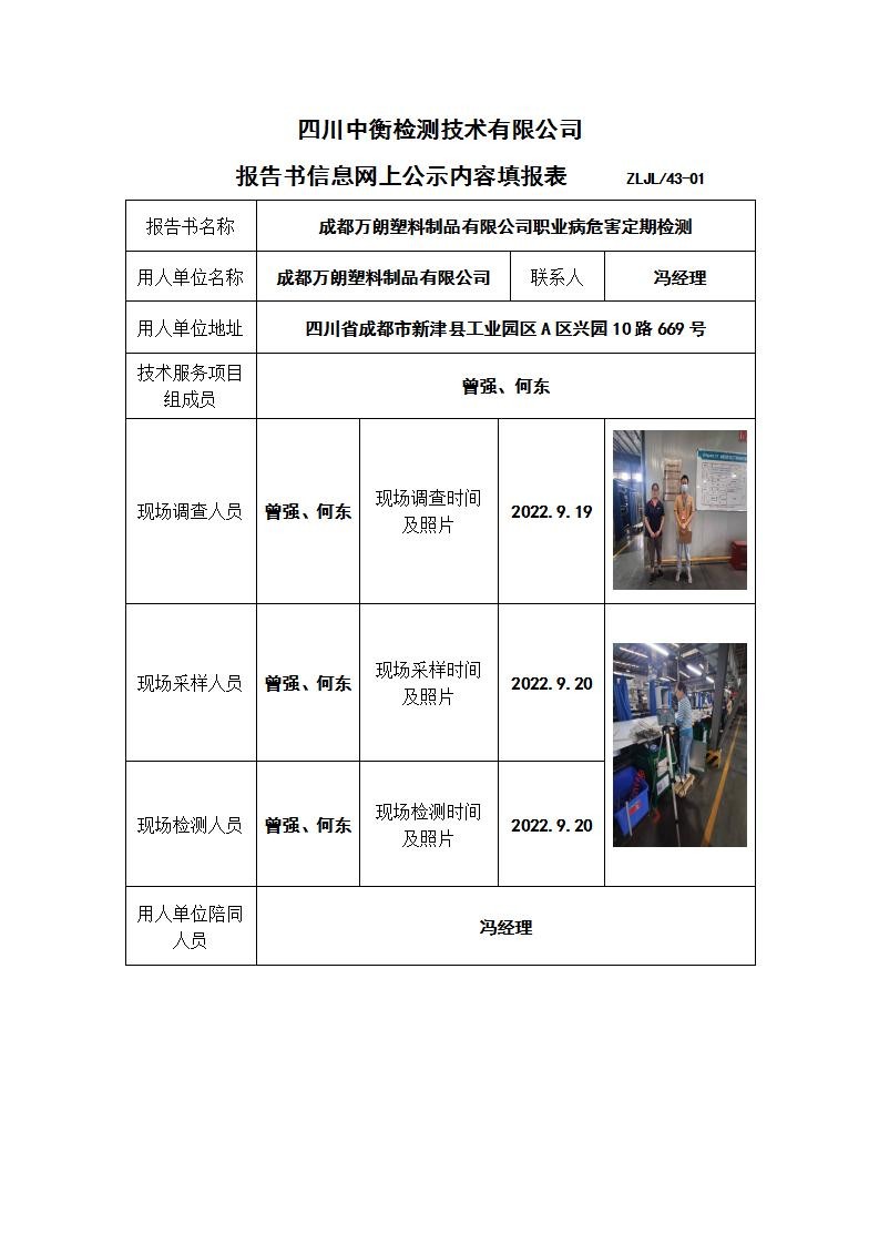 成都萬朗塑料制品有限公司職業病危害定期檢測