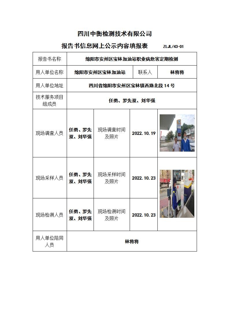 綿陽市安州區寶林加油站職業病危害定期檢測