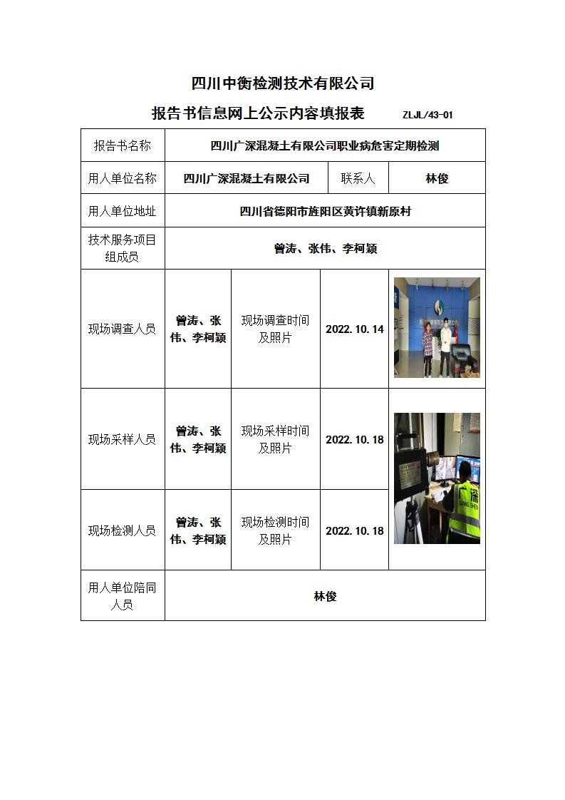 四川廣深混凝土有限公司職業病危害定期檢測
