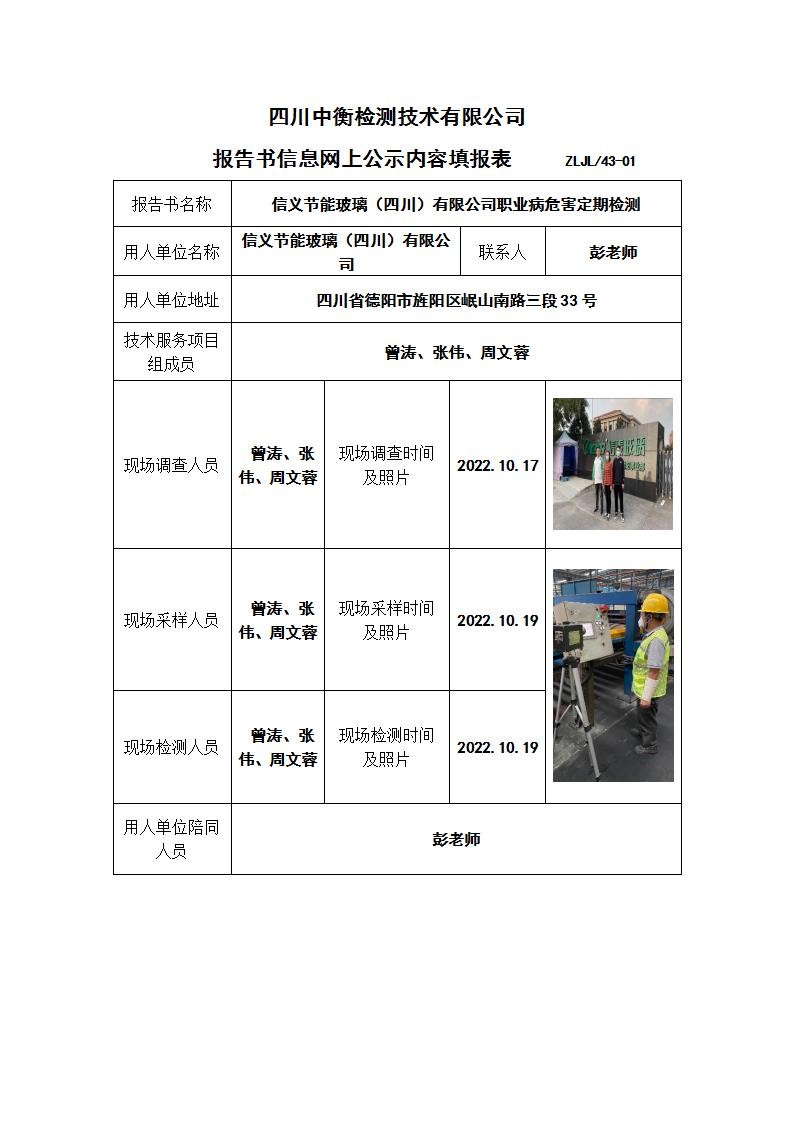 信義節(jié)能玻璃(四川)有限公司職業(yè)病危害定期檢測