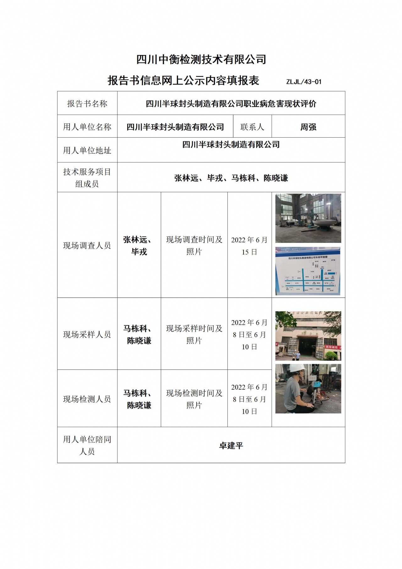四川半球封頭制造有限公司職業(yè)病危害現(xiàn)狀評價