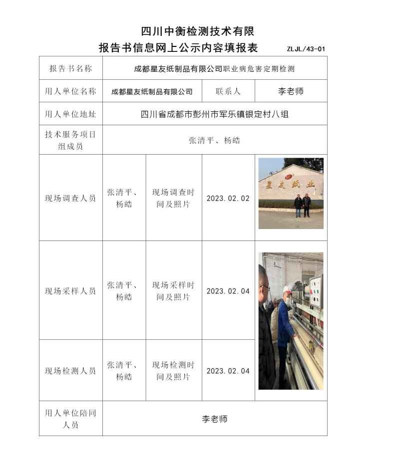成都星友紙制品有限公司職業(yè)病危害定期檢測(cè)