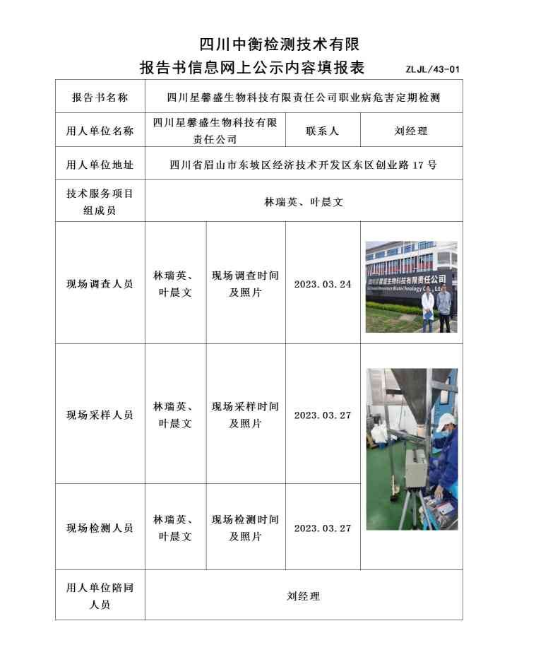 四川星馨盛生物科技有限責任公司職業病危害定期檢測
