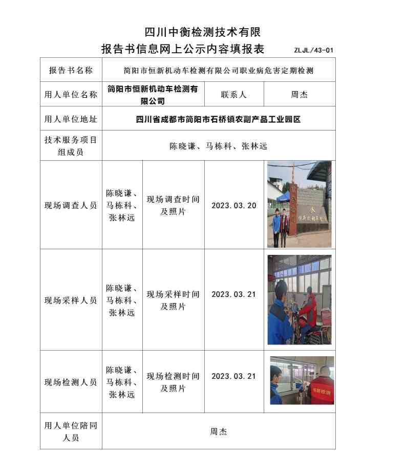 簡(jiǎn)陽(yáng)市恒新機(jī)動(dòng)車(chē)檢測(cè)有限公司職業(yè)病危害定期檢測(cè)