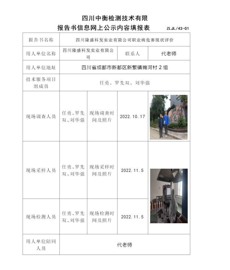 四川隆盛科發實業有限公司職業病危害現狀評價