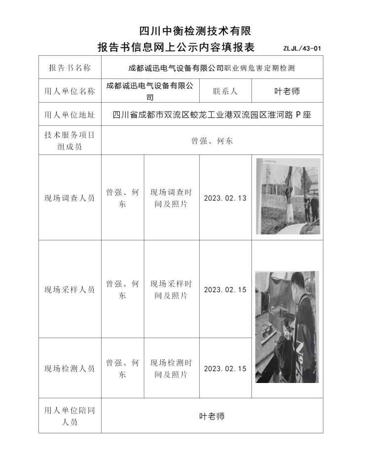成都誠迅電氣設備有限公司職業病危害定期檢測