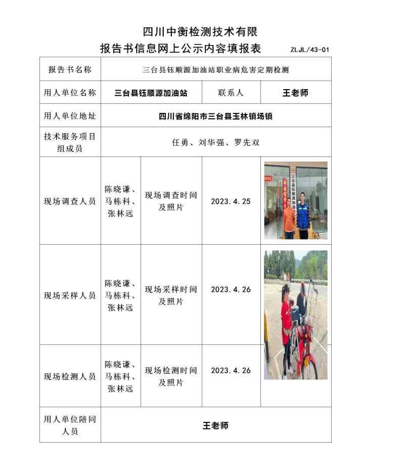 三臺(tái)縣鈺順源加油站職業(yè)病危害定期檢測(cè)