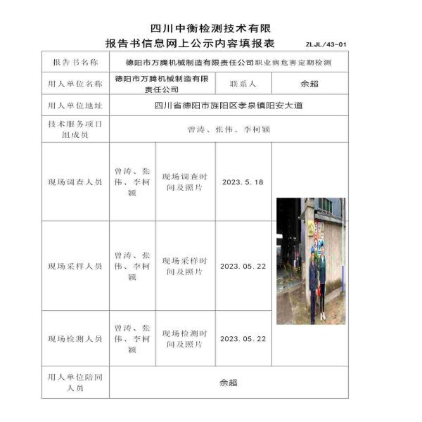 德陽市萬騰機械制造有限責任公司職業病危害定期檢測