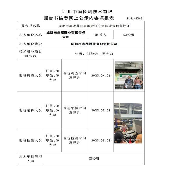 成都市鑫茂鞋業(yè)有限責(zé)任公司職業(yè)病危害定期檢測