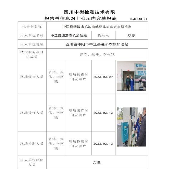 中江縣通濟農機加油站職業病危害定期檢測