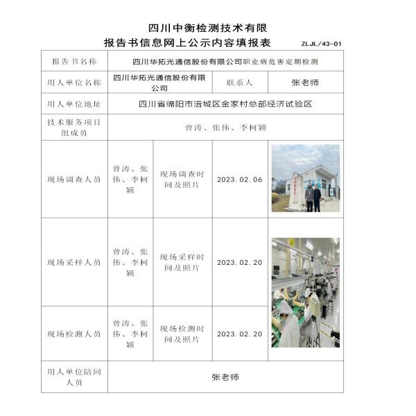 四川華拓光通信股份有限公司職業病危害定期檢測